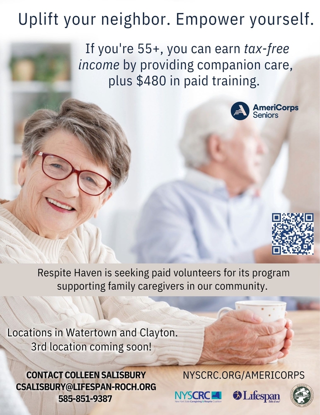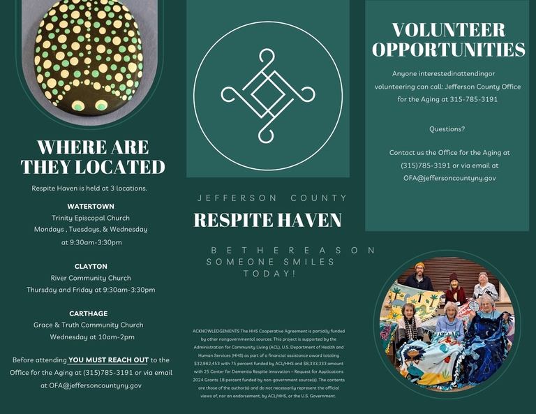 Jefferson County OFA is interested in starting a caregiver support group. We would like to have a monthly meeting with guest speakers who discuss topics of interest for caregivers. If you are interested we would like to know if you prefer to meet via zoom or in-person. Please contact 315-785-3191 if you would like to join.