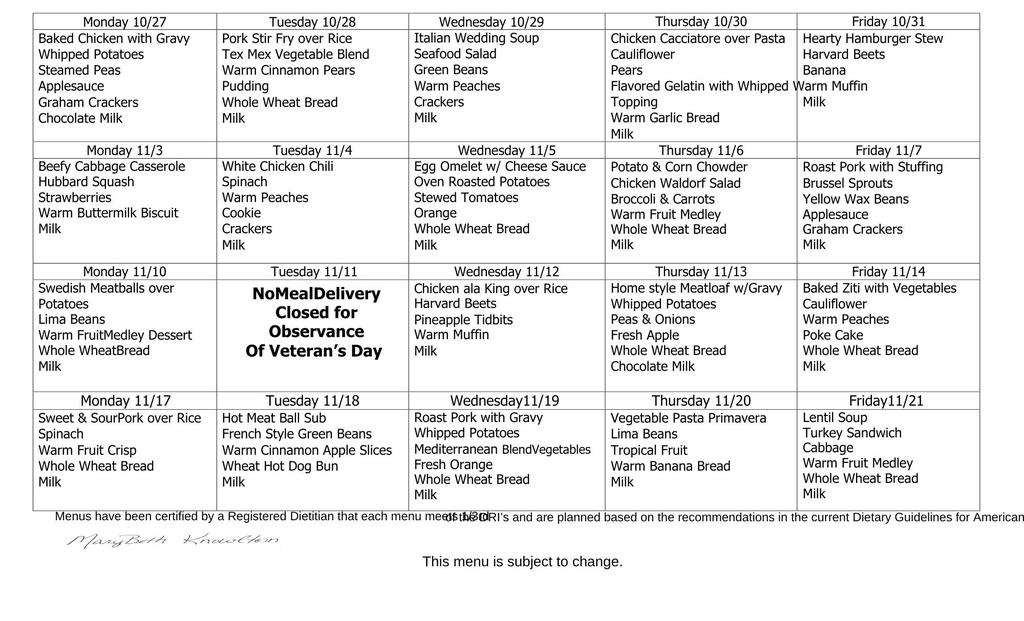 Attention!! The most current menu is now printable. It can be found in the downloadable forms section of our website.