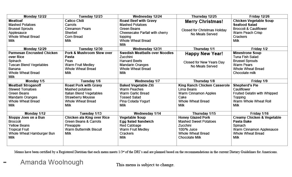 We are happy to announce that we have opened some Senior Community Meal sites throughout the county. These sites provide meals at lunch time for people 60 or over in a friendly group setting at community sites. There will be various social and educational programs scheduled at each site as well. These scheduled events are TBA. The Senior Community Meal Sites are as follows:
